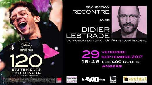 Vendredi 29 septembre à 19h45 aux 400 Coups à Angers, projection du film 120 battements par minute, suivi d’un débat avec Didier Lestrade, co-fondateur d’Act Up. Celui-ci dédicacera son livre Act […]